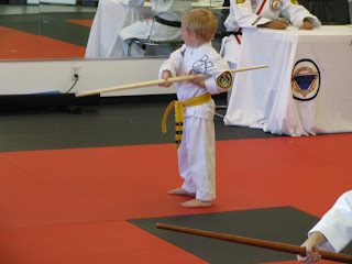 Joey will be testing this week for his. The boys were split into and older and younger class so they are not on the same schedule anymore. We have been told that they will likely be put back into the same class with higher ranked students. We are so proud of both boys!